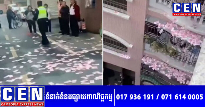 នេះជារឿងមួយដ៏ភ្ញាក់ផ្អើល ខណៈដែលកាលពីថ្ងៃទី៣ ខែមករា កន្លងទៅថ្មីៗនេះ នៅលើអ៊ីនធឺណិតបានឲ្យដឹងថា បុរសម្នាក់នៅក្នុងស្រុក Guangning ទីក្រុង Zhaoping ខេត្ត Guangdong បានគប់លុយចោលឡើងប្រសាចពីជាន់ខាងលើ ដែលបានទាក់ទាញការចាប់អារម្មណ៍យ៉ាងខ្លាំង ពីអ្នករស់នៅក្នុងសហគមន៍។