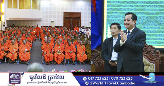 ឯកឧត្តមអភិបាលខេត្តមានប្រសាសន៍បន្តថា ប្រមុខថ្នាក់ដឹកនាំរបស់យើងមានសម្ដេចអគ្គមហាសេនាបតីតេជោហ៊ុនសែន អតីតនាយករដ្ឋមន្ត្រីនិងសម្ដេចមហាបវរធិបតីហ៊ុន ម៉ាណែត នាយករដ្ឋមន្ត្រីនៃព្រះរាជាណាចក្រកម្ពុជា។តែងតែលើកឡើងថាព្រះពុទ្ធសាសនាពិតជាមានតួនាទីសំខាន់ណាស់។នៅក្នុងការជួយជំរុញដល់ដំណើរឆ្ពោះទៅមុខរបស់សង្គមខ្មែរ។តាំងពីអតីតកាលរហូតមកដល់បច្ចុប្បន្នកាលនិងបន្តទៅអនាគត។ជាការពិតបន្ទាប់ពីសង្គ្រាមផ្ទៃក្នុងរ៉ាំរ៉ៃជាច្រើនទសវត្សរ៍បានបញ្ចប់ទៅ។មាតុភូមិរបស់យើងបានទទួលបាននៅសុខសន្តិភាពដ៏ពេញលេញនៅគ្រប់ទិសទីក្រោមពន្លឺចែងចាំងនៃនយោបាយឈ្នះឈ្នះរបស់សម្ដេចតេជោហ៊ុន សែន ជាអ្នកមគ្គុទ្ទេសឯកស្ថាបនិកសន្តិភាពធ្វើឲ្យប្រទេសជាតិយើង ទទួលបាននូវវឌ្ឍនភាពលើគ្រប់វិស័យ។ព្រះពុទ្ធសាសនាដែលត្រូវបានបំផ្លាញខ្ទេចទីដល់ឬសគល់គ្មានសល់អ្វីសោះក្នុងរបបប្រល័យពូជសាសន៍ប៉ុលពត។ក៏ត្រូវបានស្ដារនិងកសាងជាថ្មីឡើងវិញធ្វើឲ្យមានការរីកចម្រើនក្នុងជំហានមួយដ៏គួរឲ្យកត់សម្គាល់។ជាមួយនោះក៏សូមថ្លែងអំណរគុណដ៏ជ្រាលជ្រៅបំផុតចំពោះសម្ដេចព្រះសង្ឃគ្រប់ព្រះអង្គពុទ្ធសាសនិកគ្រប់រូបដែលបានចូលរួមជាមួយរាជរដ្ឋាភិបាលបន្តទ្រទ្រង់និងកសាងព្រះពុទ្ធសាសនាឱ្យមានការរីកចម្រើនសមស្របនិងស្ថានភាពសង្គម។ខ្មែរមានជំនឿរួមគ្នាលើព្រះពុទ្ធសាសនាទើបខ្មែរគ្រប់ភាគីនៃជម្លោះទាំងអស់អាចអង្គុយនៅតុចរចាជាមួយគ្នាស្វែងរកសន្តិភាពជូនជាតិបាន។ព្រះពុទ្ធសាសនាបានជួយសង្គមខ្មែរយើងក្នុងការថែរក្សាក្បួនច្បាប់ទំនៀមទម្លាប់ប្រពៃណីវប្បធម៌អក្សរសាស្ត្រដ៏ផូបផងរបស់យើង។ហើយរស់រានមានជីវិតរហូតមកដល់សព្វថ្ងៃ ទោះបីជាស្ថិតនៅក្រោមការគំរាមកំហែងដោយសង្គ្រាមនៃប្រវត្តិសាស្ត្រយ៉ាងណាក៏ដោយ។ព្រះពុទ្ធសាសនាបានជួយបណ្ដុះបណ្ដាលធនធានមនុស្សនិងអប់រំសីលធម៌ចរិយាធម៌ទៅដល់ប្រជាពលរដ្ឋគ្រប់ស្រទាប់មានន័យថាបានជួយផលិតពលរដ្ឋល្អជូនដល់សង្គមជាតិយ៉ាងដូច្នោះ។ព្រះពុទ្ធសាសនាបានដើរតួនាទីជាទីពំនឹងខាងផ្នែកផ្លូវចិត្តរបស់ប្រជាពលរដ្ឋ។ដែលចំណុចនេះខាងផ្នែកអាណាចក្រពុំអាចជំនួសបានឡើយ។