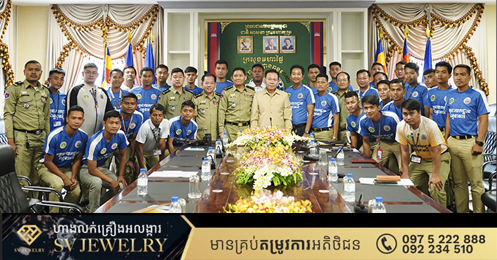 រាជធានីភ្នំពេញ ៖ ឯកឧត្តម ឧត្តមអគ្គានុរក្ស.១ ឈន សាណាត អគ្គនាយក នៃអគ្គនាយកដ្ឋានពន្ធនាគារ អញ្ជើញជួបសំណេះសំណាលជាមួយក្រុមបាល់ទាត់អគ្គនាយកដ្ឋានពន្ធនាគារចំនួន២៨រូប រសៀលថ្ងៃទី៤ ខែមីនា ឆ្នាំ២០២៤ នៅសាលប្រជុំ៤២០ នៃទីស្តីការក្រសួងមហាផ្ទៃ៕
