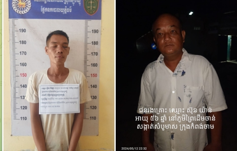 មានជនសង្ស័យឈ្មោះ ស៊ិន ភ័ណ្ឌ ភេទប្រុស អាយុ ២៩ ឆ្នាំស្នាក់នៅភូមិម្រាមទាក ឃុំជីរោទិ៍ទី២ ស្រុកត្បូងឃ្មុំ ខេត្តត្បូងឃ្មុំ ។