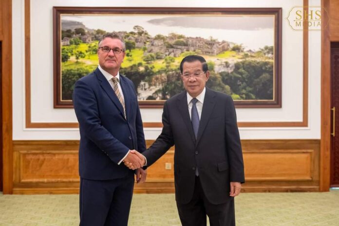 ភ្នំពេញ៖ នៅព្រឹកថ្ងៃចន្ទ ទី២០ ខែឧសភា ឆ្នាំ២០២៤ សម្ដេចអគ្គមហាសេនាបតីតេជោ ហ៊ុន សែន ប្រធានព្រឹទ្ធសភានៃព្រះរាជាណាចក្រកម្ពុជា អនុញ្ញាតឱ្យ ឯកឧត្តម Martin Vavra ឯកអគ្គរដ្ឋទូតសាធារណរដ្ឋឆែកប្រចាំព្រះរាជាណាចក្រកម្ពុជា ចូលជួបសម្ដែងការគួរសម និងពិភាក្សាការងារ នៅវិមានព្រឹទ្ធសភា រាជធានីភ្នំពេញ។