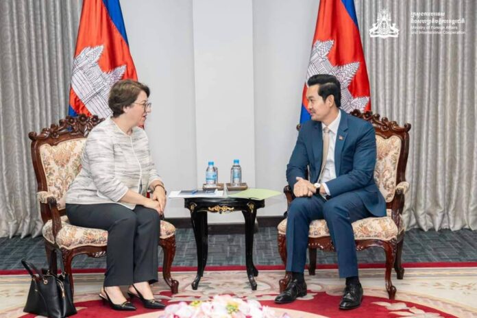 ភ្នំពេញ៖ ឯកឧត្តម ឃួន ផុនរតនៈ រដ្ឋលេខាធិការក្រសួងការបរទេស និងសហប្រតិបត្តិការអន្តរជាតិ នៅថ្ងៃទី១៥ ខែសីហា បានទទួលជួបលោកស្រី ឯក អគ្គរដ្ឋទូតវិសាមញ្ញ និងពេញសមត្ថភាពនៃសាធារណរដ្ឋតួកគីប្រចាំកម្ពុជា នៅទីស្តីការក្រសួង។