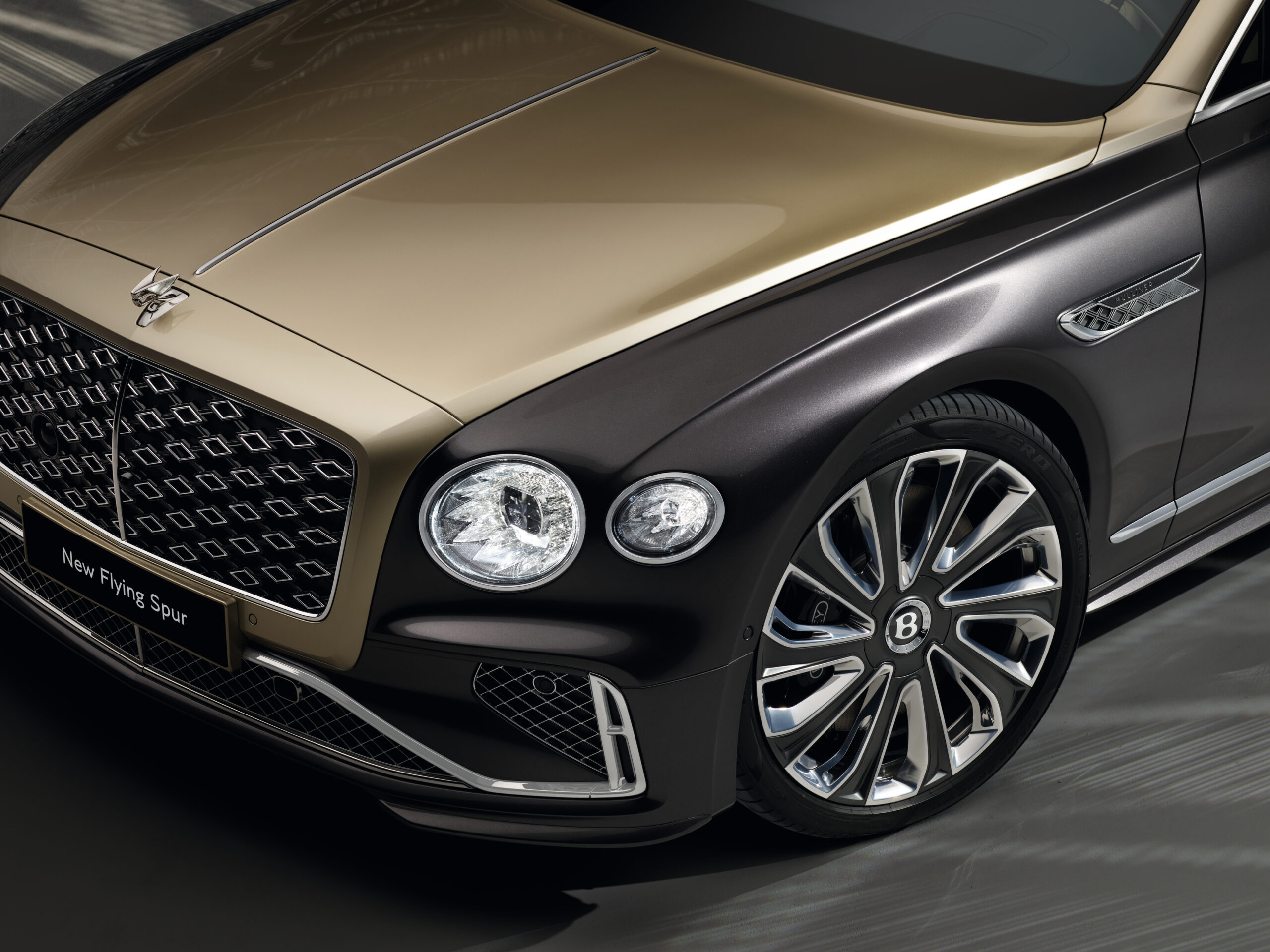 មិនត្រឹមតែប៉ុណ្ណោះ រថយន្តនេះគឺបំពាក់ដោយកង់ Mulliner ទំហំ 22 អ៊ីញ ពន្លិចប្លែកជាមួយនឹងនិមិត្តសញ្ញា Flying B ដ៍ល្បីល្បាញ ផុសឡើង សម្តែងរិទ្ធិអំណាចនៅខាងមុខរថយន្ត ។ កាន់តែស្រស់ស្អាតគឺ អមបន្ថែមដោយភ្លើងនាំដំណើរ សូមស្វាគមន៍ម្ចាស់យានយន្តក្នុងការធ្វើដំណើរគ្រប់ទីជិតទីឆ្ងាយ ។