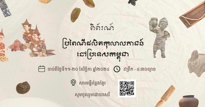 ភ្នំពេញ៖ ចាប់ពីថ្ងៃនេះ រហូតដល់ថ្ងៃទី២០ ខែវិច្ឆិកា ឆ្នាំ ២០២៤ នៅសារមន្ទីរខ្លែងខ្មែរ សាធារណជនអាចទស្សនាដោយសេរី នូវពិព័រណ៍មិនអចិន្ដ្រៃយ៍ ស្ដីពីប្រពៃណីផលិតកុលាលភាជន៍នៅក្នុងប្រទេសកម្ពុជា ដែលស្ថិតនៅប្របមហាវិថីរដ្ឋសភាថ្មីក្នុងសង្កាត់ទន្លេបាសាក់ ខណ្ឌចម្ការមន រាជធានីភ្នំពេញ (ទល់មុខវិមាន រដ្ឋសភា)។