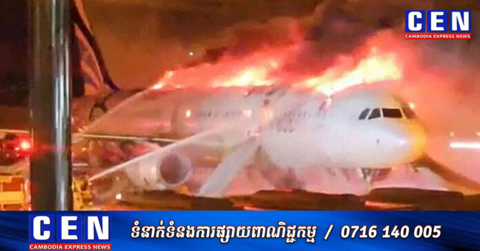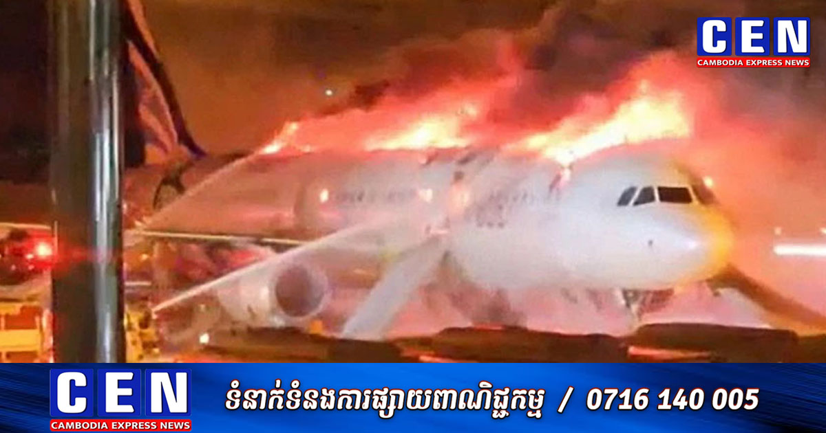 យន្តហោះដឹកអ្នកដំណើរ Air Busan Airbus របស់កូរ៉េខាងត្បូងបានឆេះនៅអាកាសយានដ្ឋានអន្តរជាតិ Gimhae ភាគខាងត្បូងប្រទេសកូរ៉េខាងត្បូង ខណៈដែលយន្តហោះនេះកំពុងហៀបនឹងចេញដំណើរ ក្នុងគោលដៅឆ្ពោះទៅកាន់ទីក្រុងហុងកុង កាលពីយប់ថ្ងៃចន្ទ (២៨ មករា)។ តែជាសំណាងល្អ អ្នកដំណើរទាំង ១៦៩ នាក់ និងសមាជិកនាវិក ៧ នាក់ នៅលើយន្តហោះ ត្រូវបានជម្លៀសចេញទាន់ពេលវេលា ដោយមានតែមនុស្ស ៣ នាក់ ប៉ុណ្ណោះ បានរងរបួសស្រាល។