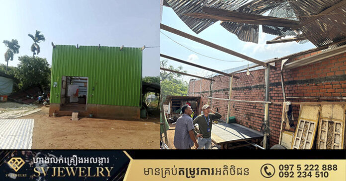ម្ចាស់ផ្ទះមានឈ្មោះឃ្លោកឌីភេទប្រុសអាយុ៣៨ឆ្នាំរស់នៅភូមិឃុំកើតហេតុខាងលើ ផ្ទះធ្វើអំពីឈើប្រក់ស័ង្កសី ខូចខាតដំបូលចំកណ្ដាលមានទំហំផ្ទះ ទទឹង១០ម៉ែត្របណ្ដោយ១៥ ម៉ែត្រ