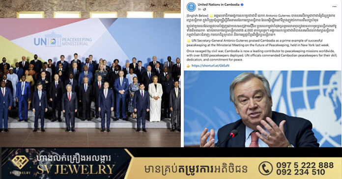 ភ្នំពេញ ៖អគ្គលេខាធិការអង្គការសហប្រជាជាតិ លោក Antonio Guterres បានសរសើរកម្ពុជាថា ជាគំរូដ៏ល្អក្នុងការរក្សាសន្តិភាព។