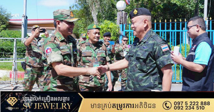 ឧត្តរមានជ័យ៖ ក្រសួងការពារជាតិ នៃព្រះរាជាណាចក្រកម្ពុជា បានឱ្យដឹងថា តបតាមការអញ្ជើញរបស់ប្រធានក្រុមលេខាធិការ យោធភូមិភាគទី៤ កម្ពុជា នៅព្រឹកថ្ងៃទី១០ ខែតុលា ឆ្នាំ២០២៥នេះ ក្រុមលេខានៃគណៈកម្មាធិការព្រំដែនថ្នាក់យោធភូមិភាគ កម្ពុជា-ថៃ (RBC) រវាងយោធភូមិភាគទី៤ ភាគីកម្ពុជា និងកងទ័ពភូមិភាគទី២ ភាគីថៃ បានជួបប្រជុំគ្នា នៅសាលប្រជុំក្រុមទំនាក់ទំនងកម្ពុជា-ថៃ ច្រកអន្តរជាតិអូរស្មាច់ ខេត្តឧត្តរមានជ័យ។