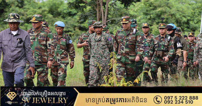 បន្ទាយមានជ័យ ៖ ក្រុមអ្នកសង្កេតការណ៍អន្តរកាល (IOT) ដឹកនាំដោយប្រទេសម៉ាឡេស៊ី អញ្ជើញចុះពិនិត្យទីតាំងជាក់ស្តែង នៅភូមិព្រៃចាន់ ឃុំអូរបីជាន់ ស្រុកអូរជ្រៅ ខេត្តបន្ទាយមានជ័យ ជាថ្មី កន្លែងដែលកងកម្លាំងថៃ និងគ្រឿងចក្រ បានបំពានអធិបតេយ្យភាពកម្ពុជា នារសៀលថ្ងៃទី១០ ខែតុលា ឆ្នាំ២០២៥ ក្រោមការសម្របសម្រួលពីក្រសួងការពារជាតិ នៃព្រះរាជាណាចក្រកម្ពុជា។