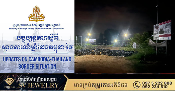 ភ្នំពេញ ៖ ក្រសួងការបរទេស និងសហប្រតិបត្តិការអន្តរជាតិ បានចេញសេចក្តីប្រកាសព័ត៌មានស្តីពីបច្ចុប្បន្នភាពស្ដីពីស្ថានការណ៍ព្រំដែនកម្ពុជា-ថៃ ថ្ងៃទី ១០-១១ ខែតុលា ឆ្នាំ២០២៥។
