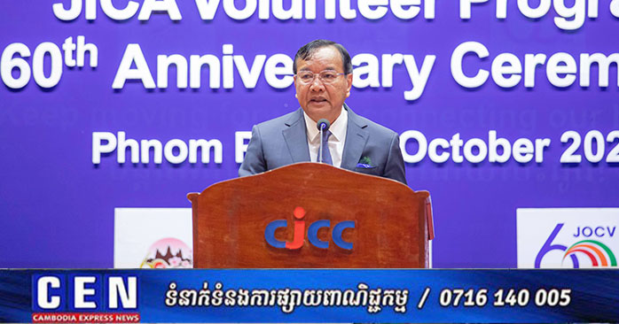 ឯកឧត្តម ប្រាក់ សុខុន ឧបនាយករដ្ឋមន្ត្រី រដ្ឋមន្ត្រីការបរទេស និងសហប្រតិបត្តិការអន្តរជាតិ បានមានប្រសាសន៍ថា ការប្រារព្ធខួបលើកទី៦០នៃការបង្កើតក្រុមអ្នកស្ម័គ្រចិត្តជប៉ុនសម្រាប់កិច្ចសហប្រតិបត្តិការ ក្រៅប្រទេស (JOCV) ដែលជាព្រឹត្តិការណ៍ដ៏សំខាន់មួយឆ្លុះបញ្ចាំងពីការប្តេជ្ញាចិត្តយ៉ាងមុតមាំ សាមគ្គីភាព អន្តរជាតិ និងការចូលរួមចំណែកដ៏មានអត្ថន័យចំពោះការអភិវឌ្ឍប្រកបដោយចីរភាពនៅទូទាំងពិភពលោក ក្នុងរយៈពេល៦ទសវត្សរ៍កន្លងមកនេះ។