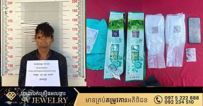 សមត្ថកិច្ចបានបន្តថា ដោយមានការសង័្សយបានធ្វើការត្រួតពិនិត្យលើរថយន្តតាក់១គ្រឿងមានដឹកអ្នកដំណើរម្នាក់ពីរាជធានីភ្នំពេញគោលដៅមកកាន់ព្រំដែនឃុំសំរោង ស្រុកចន្ទ្រា នៅពេលធ្វើការត្រួតពិនិត្យនិងឆែកឆែរក្នុងកាបូបស្ពាយរបស់អ្នកដំណើរ ក៏រកឃើញវត្ថុតាងថ្នាំញៀនប្រភេទមេតំហ្វេតាមីនចំនួន២ដុំធំ(ទម្ងន់១,៩៩៨.០៦ក្រាម)ជិត២គីឡូក្រាម។