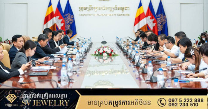 ភ្នំពេញ ៖ ឯកឧត្តម នុត អ៊ុនវ័ណរ៉ា អគ្គលេខាធិការរងគណៈកម្មាធិការវិនិយោគកម្ពុជានៃក្រុមប្រឹក្សាអភិវឌ្ឍន៍កម្ពុជា និងសហការី បានទទួលជួបពិភាក្សាការងារជាមួយគណៈប្រតិភូវិនិយោគិនមកពីទីក្រុងឆឹងទូ ឈុងឈីង និងប្រទេសម៉ាទ្បេស៊ី ដឹកនាំដោយលោកសាស្ត្រាចារ្យបណ្ឌិត Tan Yew Kuan នាយកប្រតិបត្តិ Asia Pacific Top Excellence Brand Committee និងលោក Gan Dehong ប្រធានសភាពាណិជ្ជកម្ម Chengdu Machinery Manufacturing ទីស្តីការក្រុមប្រឹក្សាអភិវឌ្ឍន៍កម្ពុជា នារសៀលថ្ងៃព្រហស្បតិ៍ ២កើត ខែកត្តិក ឆ្នាំម្សាញ់ សប្តស័ក ពុទ្ធសករាជ ២៥៦៩ ត្រូវនឹងថ្ងៃទី២៣ ខែតុលា ឆ្នាំ២០២៥ ។
