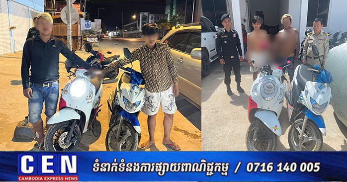 នៅថ្ងៃទី២២ ខែតុលា ឆ្នាំ២០២៥ វេលាម៉ោងប្រហែល ០១ និង៣០នាទី យប់អធ្រាត្រ សមត្ថកិច្ចប៉ុស្តិ៍នគរបាលរដ្ឋបាលឃ្មួញ បានល្បាតក្នុងមូលដ្ឋាន តាមបណ្តោយផ្លូវបេតុង ក្នុងភូមិសែនសុខ២ សង្កាត់ឃ្មួញ ខណ្ឌសែនសុខ រាជធានីភ្នំពេញ ក៏បានឃើញជនសង្ស័យឈ្មោះ យ៉េន ហេងលី ភេទប្រុស អាយុ២៥ឆ្នាំ ជនជាតិខ្មែរ កំពុងជិះម៉ូតូម៉ាកនិច ពណ៌ស ស៊េរី២០២០ ពាក់ផ្លាកលេខ ត្បូងឃ្មុំ 1I-7354 ធាក់រុញសណ្តោងជនសង្ស័យឈ្មោះ ម៉ែន ពិសាល ភេទប្រុស អាយុ៣១ឆ្នាំ ជនជាតិខ្មែរ ដែលជិះលើម៉ូតូម៉ាកស្កូបពី ពណ៌ស ស៊េរី២០២១ ពាក់ផ្លាកលេខ ភ្នំពេញ 1IT-7711 មានការសង្ស័យ សមត្ថកិច្ចក៏ហៅឲ្យសួរនាំ និងបានត្រួតពិនិត្យរកឃើញ ដែកកែច្នៃចុងស្រួច ចំនួន០១(សម្រាប់ចាក់បំបែកគ្រាប់សោរកម៉ូតូ) និងសោរទីពលេខ៨ ចំនួ០១ នៅក្នុងកាបូបស្ពាយចំហៀង(របស់ឈ្មោះ យ៉េន ហេងលី ស្ពាយជាប់ខ្លួន) និងសម្ភារផ្សេងមួយចំនួនទៀត បន្ទាប់មក សមត្ថកិច្ចក៏ឃាត់ខ្លួនឈ្មោះ យ៉េន ហេងលី និងឈ្មោះ ម៉ែន ពិសាល រួមទាំងវត្ថុតាង ម៉ូតូ០២គ្រឿង(ខាងលើ ម៉ាកនិច និងម៉ាកស្កូបពី) និងសម្ភារវត្ថុតាង យកមកសាកសួរ។
