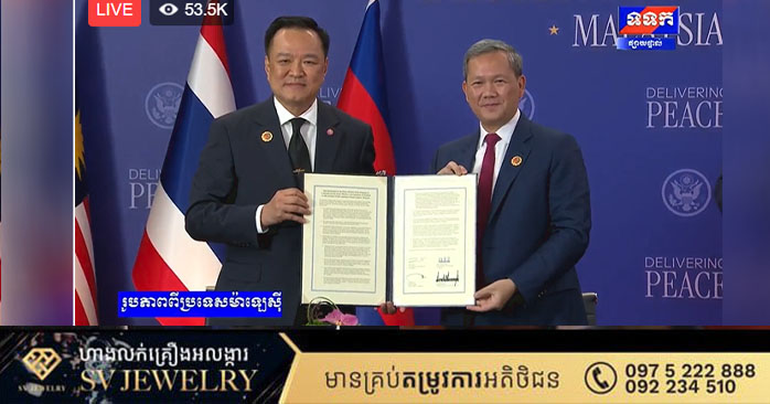 ថ្ងៃនេះត្រូវបានកត់ត្រាជាព្រឹត្តិការណ៍ប្រវត្តិសាស្ត្រដ៏មានសារៈសំខាន់ជាសារវ័ន្ត សម្រាប់កម្ពុជា និងថៃ ដែលបានបញ្ជាក់ឡើងវិញនូវការជឿជាក់រួមគ្នានៃប្រទេសយើងទាំងពីរថា សន្តិភាពនៅតអាចមាន