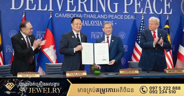 ភ្នំពេញ ៖ ឯកឧត្តមនាយឧត្តមសេនីយ៍ ទៀ សីហា ឧបនាយករដ្ឋមន្រ្តី រដ្ឋមន្រ្តីក្រសួងការពារជាតិ បានថ្លែងថា កិច្ចព្រមព្រៀងសន្តិភាពរវាងកម្ពុជា និងថៃ បានចុះហត្ថលេខាដោយថ្នាក់ដឹកនាំនៃប្រទេសទាំងពីរជាស្ថាពរ ដែលបានផ្តើមចេញពីកិច្ចប្រជុំពិសេសរវាងសម្តេចមហាបវរធិបតី ហ៊ុន ម៉ាណែត នាយករដ្ឋមន្ត្រី នៃព្រះរាជាណាចក្រកម្ពុជា និងឯកឧត្តម ភូមិថាំ វីឆាយ៉ាឆៃ នាយករដ្ឋមន្ត្រីស្តីទី នៃព្រះរាជាណាចក្រថៃ ដែលបានប្រព្រឹត្តទៅកាលពីថ្ងៃទី២៨ ខែកក្កដា ឆ្នាំ២០២៥ ដោយប្រទេសម៉ាឡេស៊ីធ្វើជាម្ចាស់ផ្ទះ និងសហការរៀបចំដោយសហរដ្ឋអាមេរិក ព្រមទាំងមានការចូលរួមយ៉ាងសកម្មពីសាធារណរដ្ឋប្រជាមានិតចិន នៅទីក្រុងពូត្រាចាយ៉ា ប្រទេសម៉ាឡេស៊ី បទឈប់បាញ់មួយក៏បានចូលជាធរមាន ការពិភាក្សានិងការរៀបចំផែនការអនុវត្តជាច្រើនត្រូវបានរៀបចំឡើងជាបន្តបន្ទាប់។