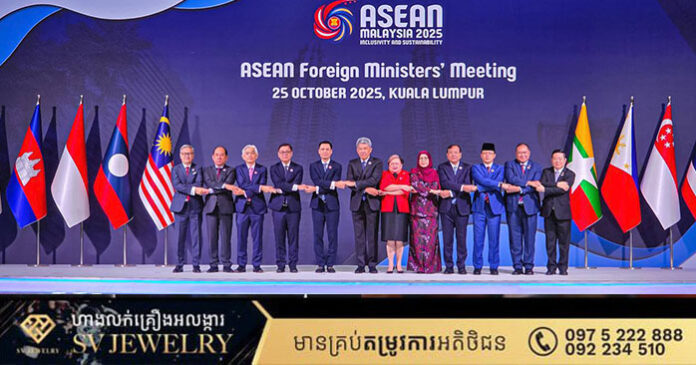 នៅថ្ងៃទី២៥ ខែតុលា ឆ្នាំ២០២៥ ឯកឧត្តម ប្រាក់ សុខុន ឧបនាយករដ្ឋមន្ត្រី និងជារដ្ឋមន្ត្រី ការបរទេស និងសហប្រតិបត្តិការអន្តរជាតិ នៃព្រះរាជាណាចក្រកម្ពុជា បានអញ្ជើញចូលរួមកិច្ចប្រជុំ រដ្ឋមន្ត្រីការបរទេសអាស៊ាន កិច្ចប្រជុំក្រុមប្រឹក្សាសហគមន៍នយោបាយ-សន្តិសុខអាស៊ានលើកទី៣០ កិច្ចប្រជុំក្រុមប្រឹក្សាសម្របសម្រួលអាស៊ានលើកទី៣៧ … និងកិច្ចប្រជុំរួមរវាងរដ្ឋមន្ត្រីការបទេស និងរដ្ឋមន្ត្រីសេដ្ឋកិច្ចអាស៊ាន នៅទីក្រុងគូឡាឡាំពួ ប្រទេសម៉ាឡេស៊ី។
