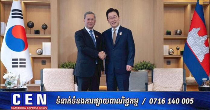 ក្នុងឱកាសនៃជំនួប, សម្ដេចបវរធិបតីបានអបអរសាទរចំពោះឯកឧត្តម Lee Jae-Myung ដែលបាន ក្លាយជាប្រធានាធិបតីនៃសាធារណរដ្ឋកូរ៉េ។ សម្តេចបវរធិបតី បានវាយតម្លៃខ្ពស់ ចំពោះទំនាក់ទំនងកម្ពុជា-សាធារណរដ្ឋកូរ៉េ ដែលត្រូវបានភ្ជាប់ឡើងវិញនៅឆ្នាំ១៩៩៧ និងត្រូវបានដំឡើងកម្រិតដល់ភាពជាដៃគូយុទ្ធសាស្ត្រ នៅឆ្នាំ២០២៤ ដែលបានធ្វើឱ្យទំនាក់ទំនងទ្វេភាគីកាន់តែមានភាពរឹងមាំ និងស៊ីជម្រៅ ហើយកិច្ចសហប្រតិបត្តិការក៏កាន់តែរីកចម្រើនគួរឱ្យកត់សម្គាល់ ស្ទើរគ្រប់វិស័យ។