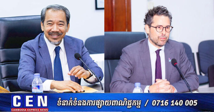 ភ្នំពេញ ៖ នៅព្រឹកថ្ងៃទី២៧ ខែតុលា ឆ្នាំ២០២៥ ឯកឧត្ដម កែវ រ៉េមី ទេសរដ្ឋមន្ត្រី និងជាប្រធានគណៈកម្មាធិការសិទ្ធិមនុស្សកម្ពុជា បានអនុញ្ញាតឱ្យលោក Benjamin Moreau តំណាងការិយាល័យអង្គការសហប្រជាជាតិ ទទួលបន្ទុកសិទ្ធិមនុស្សប្រចាំព្រះរាជាណាចក្រកម្ពុជា (OHCHR) ចូលជួបពិភាក្សាការងារ នៅសាលប្រជុំ របស់គណៈកម្មាធិការសិទ្ធិមនុស្សកម្ពុជា (គ.ស.ម.ក.)។ កិច្ចជំនួបនេះផ្តោតលើការពង្រឹងកិច្ចសហប្រតិបត្តិការ រវាង គ.ស.ម.ក. និងការិយាល័យអង្គការសហប្រជាជាតិទទួលបន្ទុកសិទ្ធិមនុស្សប្រចាំព្រះរាជាណាចក្រកម្ពុជា។