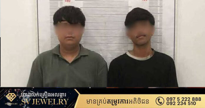 ភ្នំពេញ ៖ ដោយអនុវត្តតាមបទបញ្ជារបស់ឯកឧត្តម ឧត្តមសេនីយ៍ឯក ជួន ណារិន្ទ អគ្គស្នងការរង និងជាស្នងការនគរបាលរាជធានីភ្នំពេញ និងអនុវត្តតាមពាក្យបណ្តឹងរបស់ជនរងគ្រោះ នៅថ្ងៃទី៣០ ខែតុលា ឆ្នាំ២០២៥ កម្លាំងជំនាញផែនការងារនគរបាលព្រហ្មទណ្ឌ នៃស្នងការដ្ឋាននគរបាលរាជធានីភ្នំពេញ សហការជាមួយកម្លាំងអធិការដ្ឋាននគរបាលខណ្ឌដង្កោ បានធ្វើការស្រាវជ្រាវឃាត់ខ្លួនជនសង្ស័យ០២នាក់ នៅចំណុចជិតស្តុបវត្តកំពែង ភូមិទួលពង្រ សង្កាត់ចោមចៅទី១ ខណ្ឌពោធិ៍សែនជ័យ រាជធានីភ្នំពេញ ពាក់ព័ន្ធករណីឆក់ខ្សែក ចំនួន០៦ករណី។