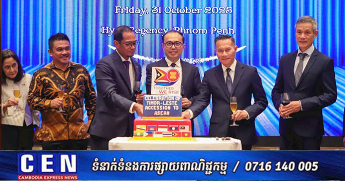 រាជធានីភ្នំពេញ៖ នាល្ងាចថ្ងៃទី៣១ ខែតុលា ឆ្នាំ២០២៥ ឯកឧត្តម វង្សី វិស្សុត ឧបនាយករដ្ឋមន្រ្តីប្រចាំការ រដ្ឋមន្រ្តីទទួលបន្ទុកទីស្តីការគណៈរដ្ឋមន្រ្តី តំណាងរាជរដ្ឋាភិបាលកម្ពុជាបានអញ្ជើញចូលរួមជាកិត្តិយស និងថ្លែងសុន្ទរកថាក្នុងកម្មវិធីអបអរសាទរសាធារណរដ្ឋប្រជាធិបតេយ្យទីម័រឡេស្តេចូលជាសមាជិកអាស៊ានទី១១ នៅសណ្ឋាគារ Hyatt Regency Phnom Penh ដោយមានការអញ្ជើញចូលរួមពីសមាជិកព្រឹទ្ធសភា រដ្ឋសភា រាជរដ្ឋាភិបាល អង្គទូត វិស័យឯកជន ភ្ញៀវជាតិនិងអន្តរជាតិជាច្រើនរូប។