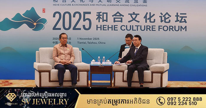 ឯកឧត្តមបណ្ឌិត ធន់ វឌ្ឍនា អនុប្រធានទី២ ព្រឹទ្ធសភា អមដំណើរដោយ ឯកឧត្តម ម៉ម ប៊ុននាង ប្រធានគណៈកម្មការទី១០ និងជាអនុប្រធានក្រុមមិត្តភាពព្រឹទ្ធសភាកម្ពុជា និងសភាប្រឹក្សានយោបាយប្រជាជនចិន ជួបសំណេះសំណាលជាមួយលោក Zhao Cheng ជាប្រធានគណៈកម្មការឃោសនាបក្សកុម្មុយនីស្តចិនប្រចាំខេត្តជឺជាំង នៅក្រុងថាយចូវ ខេត្តជឺជាំង ប្រទេសចិន នៅថ្ងៃទី១ ខែវិច្ឆិកា ឆ្នាំ២០២៥។