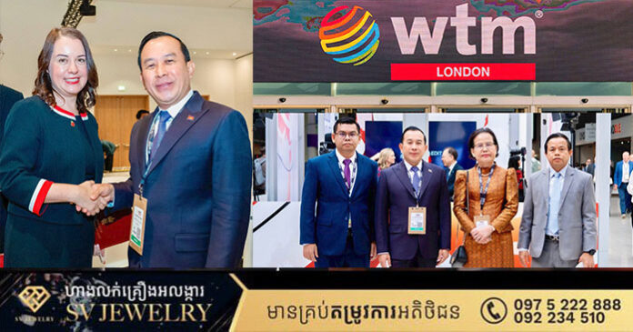 នាឱកាសដឹកនាំគណៈប្រតិភូក្រសួងទេសចរណ៍ និងក្រុមប្រឹក្សាភិបាលសិក្សាទីផ្សារ និងផ្សព្វផ្សាយទេសចរណ៍កម្ពុជា (CTB) ចូលរួមពិព័រណ៍ទេសចរណ៍ពិភពលោក (World Travel Market) នៅទីក្រុងឡុងដ៏ ចក្រភពអង់គ្លេស ឯកឧត្តម ហួត ហាក់ រដ្ឋមន្ត្រីក្រសួងទេសចរណ៍ បានជួបពិភាក្សាការងារជាមួយលោកជំទាវ Stephanie Peacock រដ្ឋមន្រ្តីកីឡា ទេសចរណ៍ សង្គមស៊ីវិល និងយុវជននៃចក្រភពអង់គ្លេស អំពីកិច្ចសហប្រតិបត្តិលើវិស័យទេសចរណ៍រវាងកម្ពុជា និងចក្រភពអង់គ្លេស។