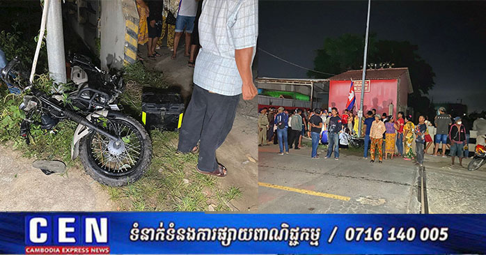 ភ្នំពេញ ៖ មន្រ្តីនគរបាលនៅនាយកដ្ឋានអត្តសញ្ញាណកម្មម្នាក់ បានទទួលមរណភាព ក្រោយបើកម៉ូតូបុកបង្កាន់ដៃស្ពានព្រែកប្រា បណ្តាលឲ្យធ្លាក់ទៅក្រោមស្ពាន នៅយប់ថ្ងៃទី៩ ខែវិច្ឆិកា ឆ្នាំ២០២៥ស្ថិតនៅតាមបណ្តោយផ្លូវ៣៦៩ សង្កាត់ព្រែកប្រា ខណ្ឌច្បារអំពៅ រាជធានីភ្នំពេញ ។