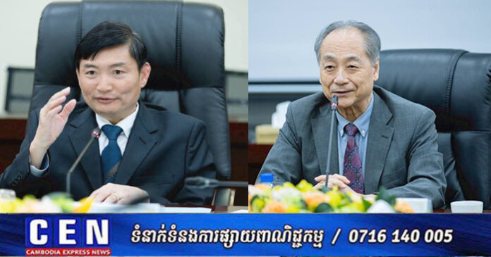 ភ្នំពេញ ៖ ឯកឧត្តម ហេង សួរ រដ្ឋមន្រ្តីក្រសួងការងារ និងបណ្តុះបណ្តាលវិជ្ជាជីវៈ បានទទួលជួបជាមួយ ឯកឧត្តម TAKAHASHI Fumiaki ប្រធានសមាគមកម្ពុជា-ជប៉ុន (JCA) ដែលបានដឹកនាំប្រតិភូ ២៩រូប ដែលជាថ្នាក់ដឹកនាំសមាគម JCA និងតំណាងក្រុមហ៊ុនសមាជិក ចូលជួបសម្តែងការគួរសម និងពិភាក្សាការងារ នារសៀលថ្ងៃទី១០ ខែវិច្ឆិកា ឆ្នាំ២០២៥ នៅទីស្តីការក្រសួង។