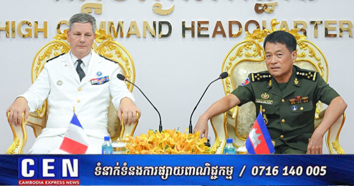 លើវិស័យយោធា ឯកឧត្តម អគ្គមេបញ្ជាការ បានថ្លែងអំណរគុណចំពោះកងទ័ពបារាំង ដែលបានផ្តល់អាហារូបករណ៍ដល់សិក្ខាកាមកម្ពុជាលើវគ្គសិក្សាជាច្រើនវគ្គ ជាពិសេស ការជួយបណ្តុះបណ្តាលកងយោធពលខេមរភូមិន្ទសម្រាប់បេសកកម្មថែរក្សាសន្តិភាពក្រោមឆត្រអង្គការសហប្រជាជាតិ។