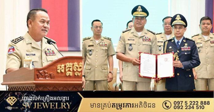 ភ្នំពេញ ៖ នាយឧត្តមសេនីយ៍ ស ថេត អគ្គស្នងការនគរបាលជាតិ នៅព្រឹកថ្ងៃទី១១ ខែវិច្ឆិកា ឆ្នាំ២០២៥នេះ បានអញ្ជើញជាអធិបតីភាព ក្នុងពិធីប្រកាសចូលកាន់តំណែងលោកឧត្តមសេនីយ៍ទោ ហ៊ុន គឹមជាតិ ជាប្រធាននាយកដ្ឋានកណ្ដាលនគរបាលយុត្តិធម៌ នៃអគ្គស្នងការដ្ឋាននគរបាលជាតិ។