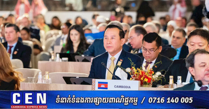 ក្នុងឱកាសនោះ ឯកឧត្តមរដ្ឋមន្ត្រី បានធ្វើបទអន្តរាគមន៍នៅក្នុងកិច្ចប្រជុំពេញអង្គ ដោយបានគូសបញ្ជាក់ជូនមហាសន្និបាតនូវកត្តាសុខសន្តិភាព ស្ថិរភាពនយោបាយ និងសណ្តាប់ធ្នាប់សាធារណៈល្អប្រសើរដែលកម្ពុជាកំពុងមាន និងត្រូវបានធានាយ៉ាងពេញលេញស្របតាមពាក្យស្លោករបស់សម្តេចធិបតី “ទេសចរណ៍រីកដុះដាលក្នុងសន្តិភាព”។
