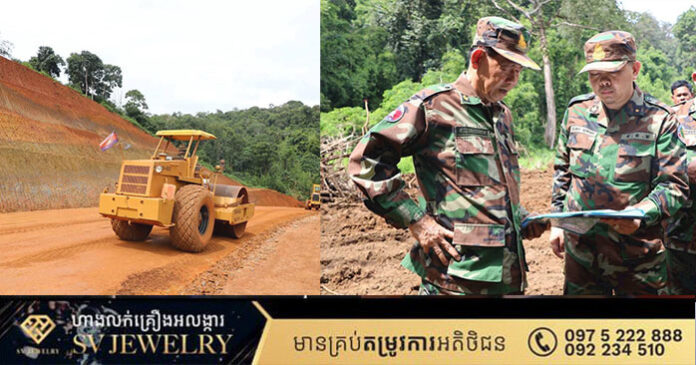 នាយឧត្តមសេនីយ៍ ខ្វាន់ ស៊ាម អគ្គមេបញ្ជាការរង នៃកងយោធពលខេមរភូមិន្ទ និងជាមេបញ្ជាការ បញ្ជាការដ្ឋានវិស្វកម្ម បានដឹកនាំក្រុមការងារចុះពិនិត្យវឌ្ឍនភាពនៃការស្ថាបនាផ្លូវខ្សែក្រវាត់ព្រំដែនកម្ពុជា-វៀតណាម ក្នុងភូមិសាស្ត្រស្រុកពេជ្រាដា និងស្រុកអូររាំង ខេត្តមណ្ឌលគិរី កាលពីថ្ងៃទី១០-១១ ខែវិច្ឆិកា ឆ្នាំ២០២៥។