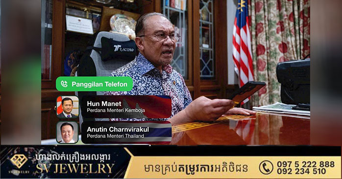 ឯកឧត្ដម Anwar Ibrahim នាយករដ្ឋមន្ត្រីម៉ាឡេស៊ី បានប្រកាសថា លោកបានពិភាក្សាតាមទូរស័ព្ទជាមួយ សម្តេចមហាបវរធិបតី ហ៊ុន ម៉ាណែត នាយករដ្ឋមន្ត្រីនៃព្រះរាជាណាចក្រកម្ពុជា និងលោក អនុទិន ឆានវីរ៉ាគុល (Anutin Charnvirakul) នាយករដ្ឋមន្ត្រីថៃ ដើម្បីពិភាក្សាអំពីការវិវត្តចុងក្រោយ នៃកិច្ចខិតខំប្រឹងប្រែងដើម្បីសន្តិភាព ក្រោយឧបទ្ទវហេតុដែលបានកើតឡើងនៅតាមបណ្តោយព្រំដែនរួមរបស់ប្រទេសទាំងពីរនាពេលថ្មីៗនេះ។ នេះបើយោងតាមសេចក្តីថ្លែងការណ៍ ដែលបានសរសេរនៅលើគេហទំព័ររបស់លោកនាយករដ្ឋមន្ត្រីម៉ាឡេស៊ី។