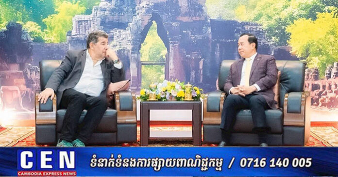 រាជធានីភ្នំពេញ ៖ ថ្ងៃទី១៦ ខែវិច្ឆិកា ឆ្នាំ២០២៥។ឯកឧត្តម ហួត ហាក់ រដ្ឋមន្រ្តីក្រសួងទេសចរណ៍ បានអនុញ្ញាតជូនលោក Michaël Darmon និងលោក Yves Derai អ្នកកាសែត ផលិតករ និងអ្នកនិពន្ធដ៏ល្បីរបស់ស្ថានីយទូរទស្សន៍អន្តរជាតិ TV5 Monde ដ៏ធំមួយក្នុងពិភពលោកដែលមានទស្សនិកជនជាង ៤២១លាននាក់ ចូលជួបសម្តែងការគួរសម និងពិភាក្សាការងារផ្លាស់ប្តូរយោបល់ ព្រមស្នើសុំអនុសាសន៍ណែនាំលើគម្រោងថតភាពយន្តឯកសារស្តីពី “ការរីកចម្រើនរុងរឿងរបស់កម្ពុជា” ក្រោមការដឹកនាំដ៏ត្រឹមត្រូវ ប្រកបដោយគតិបណ្ឌិត និងចុក្ខវិស័យវែងឆ្ងាយរបស់រាជរដ្ឋាភិបាលកម្ពុជាចាប់តាំងពីអាណត្តិរបស់សម្តេចតេជោ រហូតមកដល់សម្តេចធិបតី។