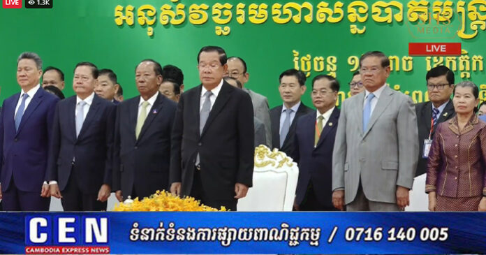 ភ្នំពេញ ៖ សម្ដេចអគ្គមហាសេនាបតីតេជោ ហ៊ុន សែន ប្រធានព្រឹទ្ធសភានៃព្រះរាជាណាចក្រកម្ពុជា និងជាប្រធានក្រុមឧត្តមប្រឹក្សាផ្ទាល់ព្រះមហាក្សត្រ ព្រះរាជតំណាងដ៏ខ្ពង់ខ្ពស់បំផុត ព្រះករុណាព្រះបាទ សម្ដេចព្រះបរមនាថ នរោត្ដម សីហមុនី ព្រះមហាក្សត្រនៃព្រះរាជាណាចក្រកម្ពុជា អញ្ជើញជាអធិបតី ក្នុងពិធីអនុសំវច្ឆរមហាសន្និបាតមន្ត្រីសង្ឃទូទាំងប្រទេស លើកទី៣៣ ឆ្នាំ២០២៥។ ពិធីនេះបានធ្វើឡើងនាវិទ្យាស្ថានជាតិអប់រំ, ព្រឹកថ្ងៃចន្ទ ១២រោច ខែកត្តិក ឆ្នាំម្សាញ់ សប្តស័ក ពុទ្ធសករាជ ២៥៦៩ ត្រូវនឹងថ្ងៃទី១៧ ខែវិច្ឆិកា ឆ្នាំ២០២៥៕ រក្សាសិទ្ធដោយ៖សុទ្ធលី