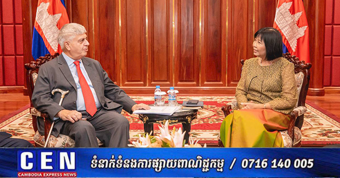 លោកជំទាវរដ្ឋមន្ត្រីស្តីទី បានអរគុណឯកឧត្តមឯកអគ្គរដ្ឋទូតអូទ្រីស ដែលបានរួមចំណែកពង្រឹងពង្រីកទំនាក់ទំនងកម្ពុជា-អូទ្រីស និងបានអរគុណការគាំទ្ររបស់អូទ្រីសចំពោះកម្ពុជាលើផ្នែកដោះមីន និងបណ្តុះបណ្តាលធនធានមនុស្ស។ លោកជំទាវបានផ្លាស់ប្តូរយោបល់ជាមួយឯកឧត្តមឯកអគ្គរដ្ឋទូត អំពីមធ្យោបាយដើម្បីពង្រីកកិច្ចសហប្រតិបត្តិការរវាងកម្ពុជា និងអូទ្រីសបន្ថែមទៀត ទាំងក្នុងក្របខ័ណ្ឌទ្វេភាគី និងពហុភាគី។ ភាគីទាំងពីរ បានលើកពីលទ្ធភាព បង្កើនទំនាក់ទំនងពាណិជ្ជកម្ម និងការវិនិយោគរវាងប្រទេសទាំងពីរផងដែរ។ ឯកឧត្ដមឯកអគ្គរដ្ឋទូតអូទ្រីស បានកត់សម្គាល់ដោយកោតសរសើរអំពីការរីកចម្រើនរបស់កម្ពុជានាប៉ុន្មានឆ្នាំចុងក្រោយនេះ។