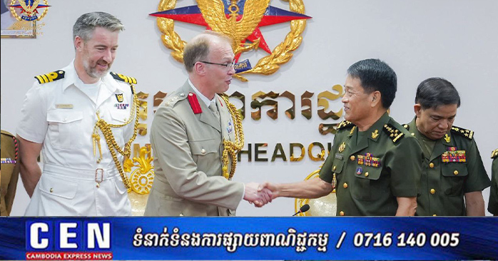 ភ្នំពេញ៖ នៅព្រឹកថ្ងៃទី១៨ ខែវិច្ឆិកា ឆ្នាំ២០២៥ ឯកឧត្តម នាយឧត្តមសេនីយ៍ វង្ស ពិសេន អគ្គមេបញ្ជាការ នៃកងយោធពលខេមរភូមិន្ទ បានអនុញ្ញាតឱ្យលោក វរសេនីយ៍ឯក ជូលៀន អ.អិល.ស្មីត សេនានុព័ន្ធចក្រភពអង់គ្លេសថ្មីប្រចាំកម្ពុជា ដែលមាននិវេសនដ្ឋាននៅក្រុងហាណូយ ប្រទេសវៀតណាម ចូលជួបសម្តែងការគួរសម និងពិភាក្សាការងារ នៅអគ្គបញ្ជាការដ្ឋាន។
