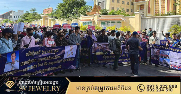 ភ្នំពេញ ៖ ប្រជាពលរដ្ឋជាង៣០០នាក់ដែលជាជនរងគ្រោះ ដោយសារក្រុមហ៊ុនពិភពដីមាស នៅព្រឹកថ្ងៃទី២៤ ខែវិច្ឆិកា ឆ្នាំ២០២៥នេះ លើកគ្នាតវ៉ាទ្រង់ទ្រាយធំ រហូតឈានដល់ការបិទផ្លូវនៅខាងមុខសាលាដំបូងរាជធានីភ្នំពេញ ស្ថិតក្នុងភូមិសាស្ត្រខណ្ឌជ្រោយចង្វា បន្ទាប់ពីការដោះស្រាយសងប្រាក់ពលរដ្ឋ បានអូសបន្លាយយូរខែយូរឆ្នាំមកហើយ។