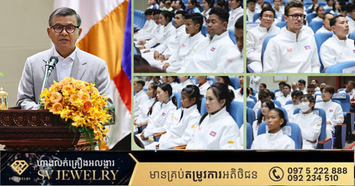 នារសៀលថ្ងៃទី២៤ ខែវិច្ឆិកា ឆ្នាំ២០២៥ ឯកឧត្ដមបណ្ឌិតសភាចារ្យ ហង់ជួន ណារ៉ុន ឧបនាយករដ្ឋមន្ត្រី រដ្ឋមន្ត្រីក្រសួងអប់រំ យុវជន និងកីឡា តំណាងដ៏ខ្ពង់ខ្ពស់ សម្តេចមហាបវរធិបតី ហ៊ុន ម៉ាណែត នាយករដ្ឋមន្រ្តី នៃព្រះរាជាណាចក្រកម្ពុជា បានអញ្ជើញជាអធិបតីក្នុងពិធីសំណេះសំណាលជាមួយប្រតិភូកីឡាកម្ពុជា ចូលរួមការប្រកួតកីឡាស៊ីហ្គេម លើកទី៣៣ ឆ្នាំ២០២៥ នៅព្រះរាជាណាចក្រថៃ ដែលប្រព្រឹត្តទៅចាប់ពីថ្ងៃទី ៩ ដល់ថ្ងៃទី២០ ខែធ្នូ ឆ្នាំ២០២៥ និងមានការចូលរួមពីសំណាក់ ឯកឧត្តម លោកជំទាវ ថ្នាក់ដឹកនាំក្រសួងអប់រំ យុវជន និងកីឡា ឯកឧត្តម លោកជំទាវ លោក លោកស្រី គណៈកម្មការអូឡាំពិកកម្ពុជា សហព័ន្ធកីឡាជាតិ គ្រូបង្វឹក កីឡាករ កីឡាការិនីទាំង៣៣៣នាក់។