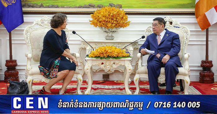 ភ្នំពេញ ៖ ឯកឧត្តមកិត្តិសេដ្ឋាបណ្ឌិត ជាម យៀប អនុប្រធានទី១ រដ្ឋសភា តំណាងដ៏ខ្ពង់ខ្ពស់របស់សម្តេចមហារដ្ឋសភាធិការធិបតី ឃួន សុដារី ប្រធានរដ្ឋសភានៃព្រះរាជាណាចក្រកម្ពុជា នាព្រឹកថ្ងៃទី២៥ ខែវិច្ឆិកា ឆ្នាំ២០២៥ បានអនុញ្ញាតឱ្យលោកជំទាវ អាឡូណា ហ្វីសស៊ឺ-ខេម (Alona Fisher-Kamm) ឯកអគ្គរដ្ឋទូត នៃរដ្ឋអ៊ីស្រាអែលចូលជួបសំដែងការគួរសមនិងពិភាក្សាការងារ នៅវិមានរដ្ឋសភា។