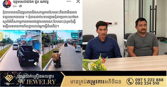 បន្ទាប់អំពីឃើញសកម្មភាព របស់ជនស៊ីវិលពីរនាក់ មិនប្រក្រតីបានប្រើអំពើមិនគប្បីទៅលើអ្នកបើករថយន្តទេសចរណ៍លោកឧត្តមសេនីយ៍ឯកជួនណារិន្ទ អគ្គស្នងការរងនិងជាស្នងការនគរបាលរាជធានីភ្នំពេញបានចាត់កម្លាំងឱ្យកោះហៅអ្នកទាំងពីរដើម្បីមកសាកសួរអំពីព័ត៌មាននិងអនុវត្តច្បាប់ទៅតាមនីតិវិធី។