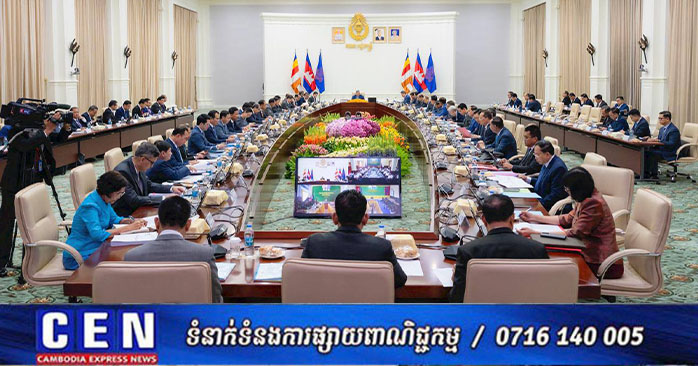 ភ្នំពេញ ៖ ព្រឹកថ្ងៃសុក្រ ទី២៨ វិច្ឆិកា ២០២៥សម្តេចមហាបវរធិបតី ហ៊ុន ម៉ាណែត នាយករដ្ឋមន្រ្តីនៃកម្ពុជា បានអញ្ជើញដឹកនាំកិច្ចប្រជុំពេញអង្គគណៈរដ្ឋមន្ត្រី នៅវិមានសន្តិភាព ដោយពិភាក្សា និងឆ្លងលើរបៀបវារៈចំនួន៥៖