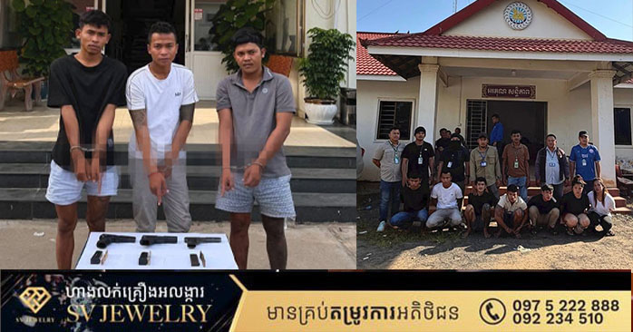 ដកហូតអាវុធខ្លីចំនួន៣ដើម ម៉ាក K54, ម៉ាក CF98 និងម៉ាក Glock19។ បច្ចុប្បន្នជនសង្ស័យកំពុងបញ្ជូនខ្លួនមកកាន់នាយកដ្ឋាននគរបាលព្រហ្មទណ្ឌដើម្បីធ្វើការសាកសួរ៕ រក្សាសិទ្ធដោយ៖សុទ្ធលី