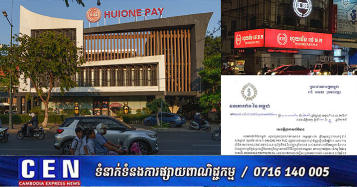 ធនាគារជាតិនៃកម្ពុជា សូមជម្រាបជូនសាធារណជន មេត្តាជ្រាបថា គ្រឹះស្ថានផ្តល់សេវាទូទាត់ សងប្រាក់ ហួយវ័ន ផេ ម.ក់ (HUIONE PAY PLC.) ត្រូវបានដកហូតអាជ្ញាប័ណ្ណធ្វើប្រតិបត្តិការ យោងតាម លិខិតលេខធ១៤.០២៤.២០២៦ ឆ.ត ចុះថ្ងៃទី២៥ ខែកញ្ញា ឆ្នាំ២០២៤ របស់ធនាគារជាតិនៃកម្ពុជា និងបាន បំពេញកាតព្វកិច្ចជម្រះបញ្ជីរំលាយគ្រឹះស្ថានតាមនីតិវិធីច្បាប់ចប់ជាស្ថាពរ ដោយក្រុមហ៊ុនសវន់កម្ម រីចន៍ & ផាតនើរ (REACHS & PARTNERS Co., Ltd) យោងតាមសេចក្តីសម្រេចលេខ ១០៨១ ព.ណ.ចបព ចុះថ្ងៃទី១៩ ខែមិថុនា ឆ្នាំ២០២៥ របស់ក្រសួងពាណិជ្ជកម្ម។
