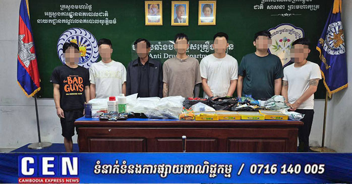រាជធានីភ្នំពេញ៖ អនុវត្តតាមបទបញ្ជារបស់ ឯកឧត្តម នាយឧត្តមសេនីយ៍ ស ថេត អគ្គស្នងការនគរបាលជាតិ និង ឯកឧត្តម ឧត្តមសេនីយ៍ឯក ប៊ុន ប៉ាម៉ារីលុច អគ្គស្នងការរងទទួលដឹកនាំ មន្ទីរប្រឆាំងបទល្មើសគ្រឿងញៀន និង ឯកឧត្តម ឧត្តមសេនីយ៍ឯក ព្រុំ សន្ធរ អគ្គស្នងការរងទទួលសហការដឹកនាំមន្ទីរប្រឆាំងគ្រឿនញៀន និងដឹកនាំបញ្ជាផ្ទាល់ពី ឯកឧត្តម ឧត្តមសេនីយ៍ឯក ឃឹង សារ៉ាត់ នាយកមន្ទីរប្រឆាំងបទល្មើសគ្រឿងញៀន, នៅថ្ងៃទី២៩ ខែវិច្ឆិកា ឆ្នាំ២០២៥ វេលាម៉ោង០១៖៤០នាទី កម្លាំងនៃមន្ទីរប្រឆាំងបទល្មើសគ្រឿងញៀន សហការជាមួយស្នងការដ្ឋានរាជធានីភ្នំពេញ ដោយមានការដឹកនាំសម្របសម្រួលពីព្រះរាជអាជ្ញារង នៃអយ្យការអមសាលាដំបូងរាជធានីភ្នំពេញ លោក សេង ម៉េងស្រ៊ុន បានបង្រ្កាបករណីផលិត កែច្នៃ ជួញដូរ រក្សាទុក និងប្រើប្រាស់ដោយខុសច្បាប់ នូវសារធាតុញៀន ប្រព្រឹត្តិនៅចំនួន៥គោលដៅ។
