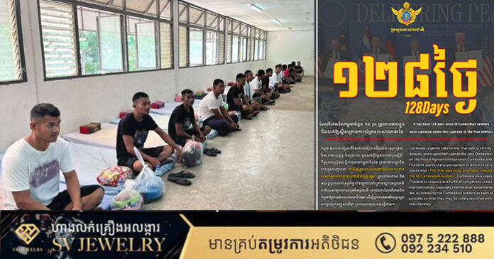 ក្រសួងការពារជាតិ បានបញ្ជាក់ថា ថ្ងៃនេះជាថ្ងៃទី១២៨ហើយ ដែលវីរកងទ័ពកម្ពុជាចំនួន១៨រូប ត្រូវបានចាប់ខ្លួន និងដាក់ឱ្យស្ថិតក្រោមការឃុំគ្រងរបស់យោធាថៃ។