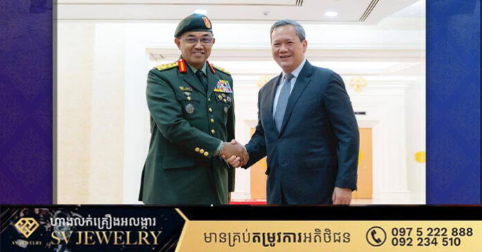 ឯកឧត្តមអគ្គមេបញ្ជាការកងទ័ពម៉ាឡេស៊ី បានជម្រាបជូនសម្ដេចបវរធិបតី អំពីការប្ដេជ្ញាចិត្តក្នុងការខិតខំចូលរួមចំណែកសម្របសម្រួល និងធានាឱ្យបាននូវការអនុវត្តតាមបទឈប់បាញ់កម្ពុជា-ថៃ, ស្មារតីនៃកិច្ចប្រជុំគណ:កម្មាធិការព្រំដែនទូទៅកម្ពុជា-ថៃ និងខ្លឹមសារនៃសេចក្ដីថ្លែងការណ៍រួម កម្ពុជា-ថៃ ដែលបានចុះហត្ថលេខានៅទីក្រុងគូឡាឡាំពួ ៕រក្សាសិទ្ធដោយ៖សុទ្ធលី
