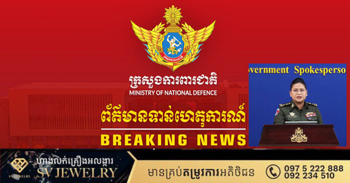ភ្នំពេញ ៖ សូមជម្រាបជូននូវស្ថានការណ៍នៅតាមបន្ទាត់ព្រំដែនកម្ពុជា-ថៃ អំពី ករណីយោធាថៃ បានបើកការបាញ់ប្រហារមកលើអធិបតេយ្យរបស់កម្ពុជា នៅក្នុងភូមិសាស្រ្តយោធភូមិភាគទី៥ ឃុំថ្មដា ស្រុកវាលវែង ខេត្តពោធិ៍សាត់៖