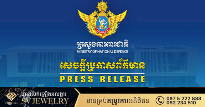 ក្រសួងការពារជាតិ និងកងយោធពលខេមរភូមិន្ទបន្តគោរព និងអនុវត្តឥតងាករេនូវរាល់ការសម្រេចចិត្ត របស់រាជរដ្ឋាភិបាល នៃព្រះរាជាណាចក្រកម្ពុជា ក្នុងការដោះស្រាយបញ្ហាដោយសន្តិវិធី ស្របតាមច្បាប់ អន្តរជាតិ ដើម្បីការពារអធិបតេយ្យ និងបូរណភាពទឹកដី ព្រមទាំងសុខសុវត្ថិភាពរបស់ ប្រជាជនកម្ពុជា។ទន្ទឹងនឹងនេះ កម្ពុជាសូមអំពាវនាវឱ្យភាគីថៃវិលត្រឡប់មកអនុវត្តវិញនូវបទឈប់បាញ់ និងសេចក្តីថ្លែងការណ៍រួមស្តីពីកិច្ចព្រមព្រៀងសន្តិភាពកម្ពុជាថៃដែលចុះហត្ថលេខាកាលពីថ្ងៃទី២៦ ខែតុលា ឆ្នាំ២០២៥ ក្រោមការធ្វើជាសាក្សីរបស់ឯកឧត្តមប្រធានាធិបតីសហរដ្ឋអាម៉េរិកដូណាល់ ត្រាំនិងឯកឧត្តមនាយករដ្ឋមន្ត្រីម៉ាឡេស៊ី អាន់វ៉ា អ៊ីប្រាហ៊ីម ប្រធានអាស៊ានប្តូរវេន៕ រក្សាសិទ្ធដោយ៖សុទ្ធលី